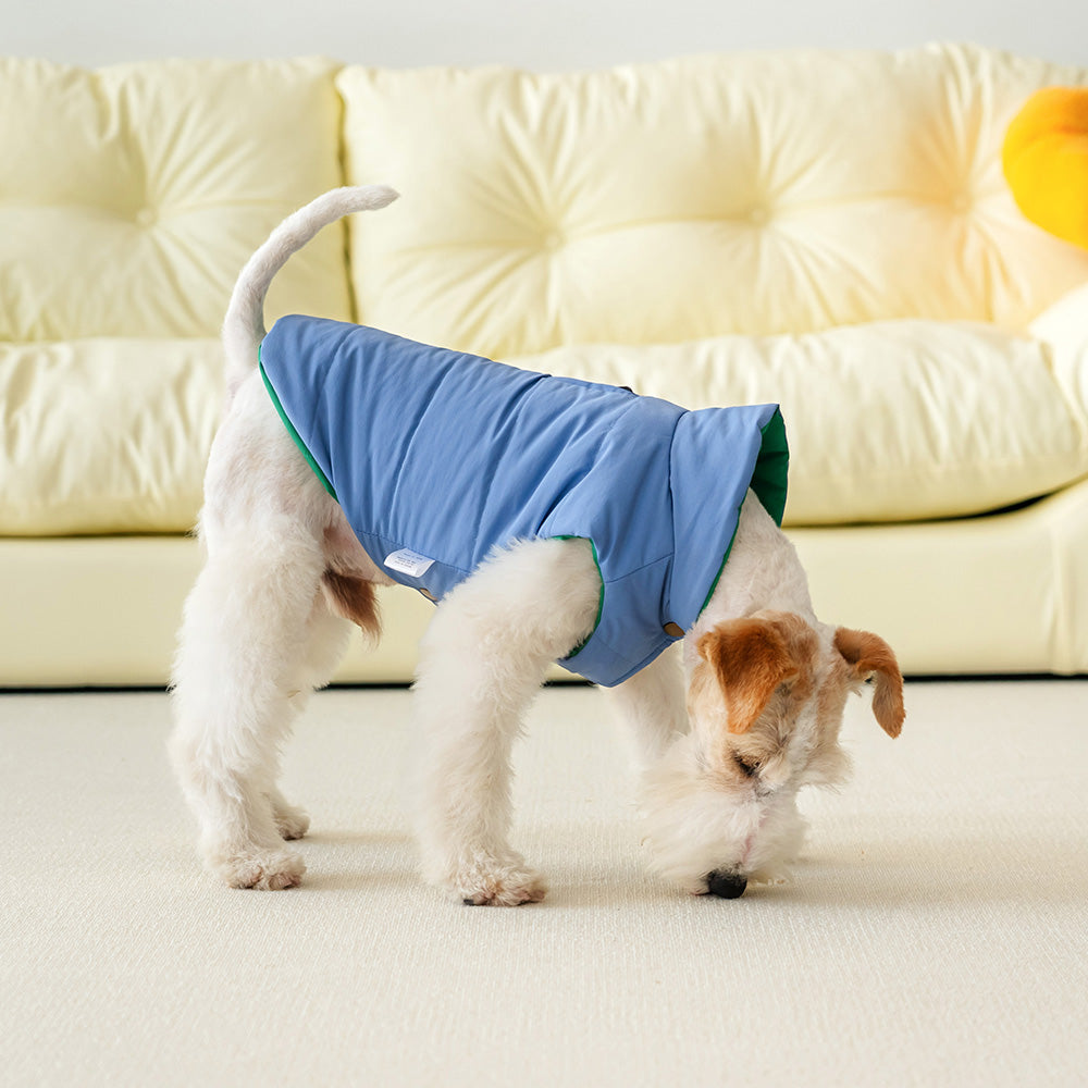Inspirada en los inviernos parisinos. Esta camperita reversible en azul con verde mezcla elegancia y diversión. Abrigadita, suave y lista para conquistar el barrio con glamour.
